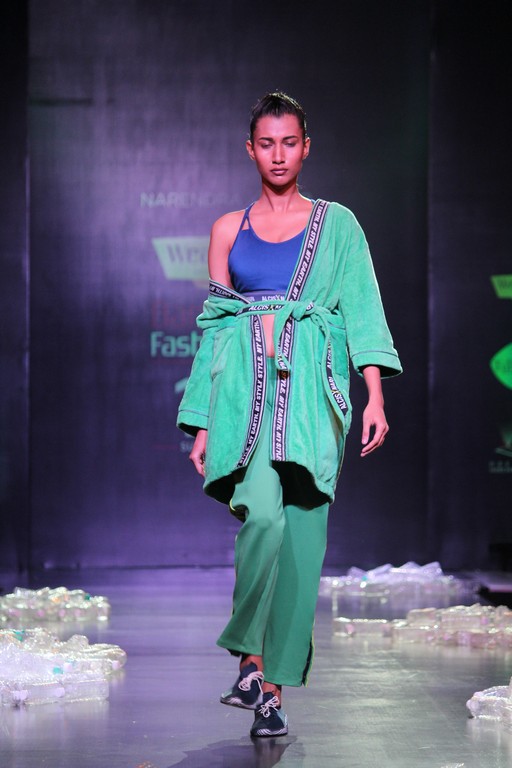 The grand finale was by Narendra Kumar his concept of sustainable fashion was commendable. He was a true star of the night with his beautiful concept and ideology. His garments were made out of PET bottle which was a great start to sustainable fashion in India. His concept of comfort clothing leisurewear is the talk of the town.