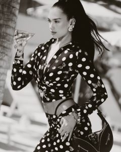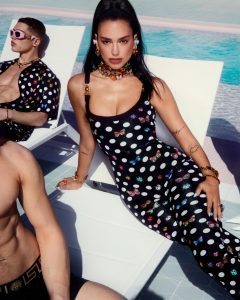 Alongside the collection’s fashion show launch, a dedicated image campaign starring Dua Lipa lensed by photographer Carlijn Jacobs is released, showcasing Donatella Versace and Dua Lipa collaboration with Dua living ‘La Vacanza’  lifestyle.