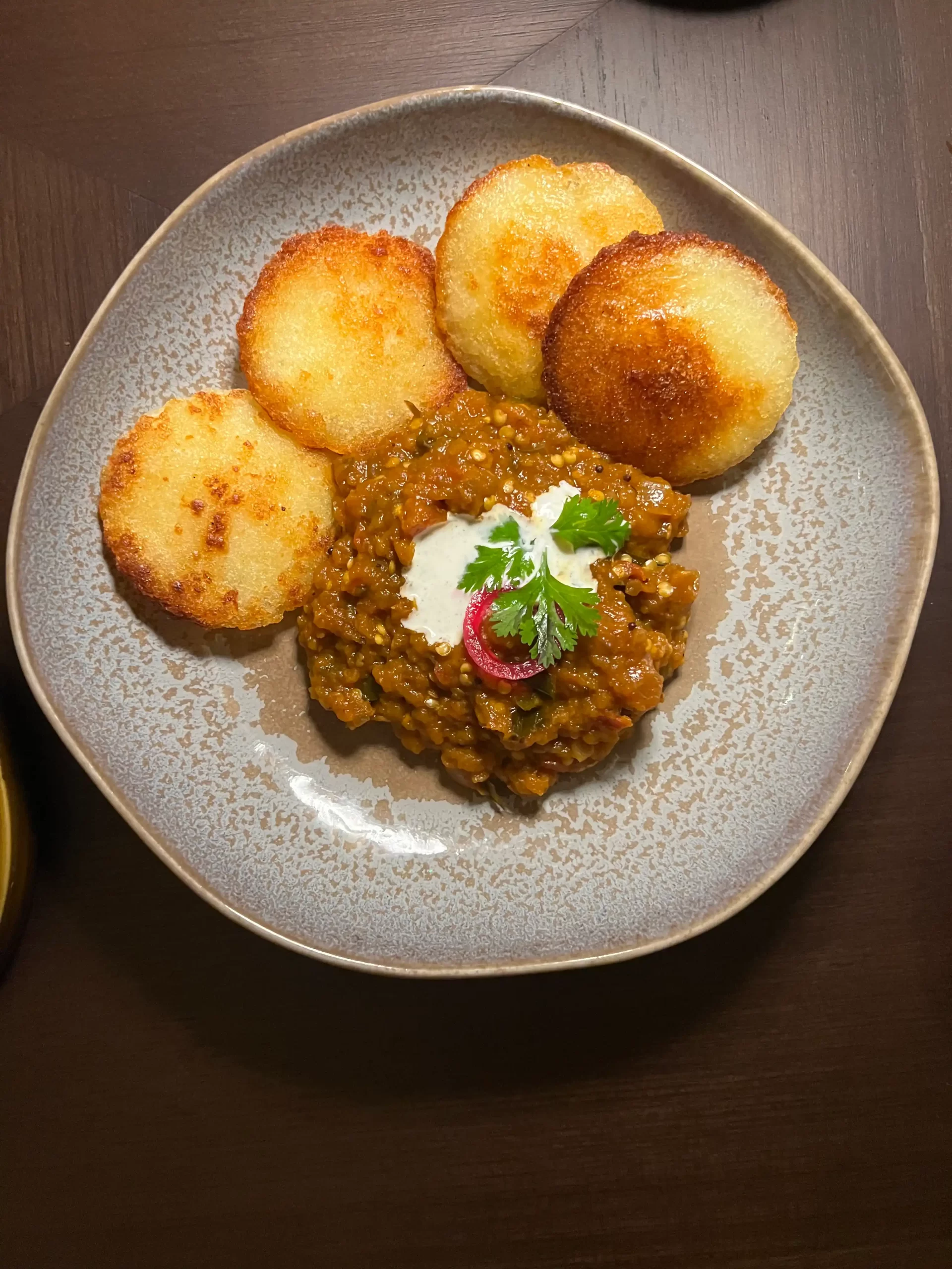 The menu, thoughtfully curated the South Indian heritage, where the magic really starts. Every meal has a story to tell, not merely of ingredients, but of culture, memory, and emotion. The Pogabettina Mettani Vankaya — smoked aubergine mash served with crusty thatte idli — is like a reassuring whisper from Andhra’s heartland, while the Chrompet Kozhi 65, with its curry leaf sour cream drizzle, adds a surprising twist to a familiar South Indian favorite. The Kappa Cutlet, with fillings of onion, beetroot and spiced tapioca cutlets served with beetroot chutney, very crispy and delightful.