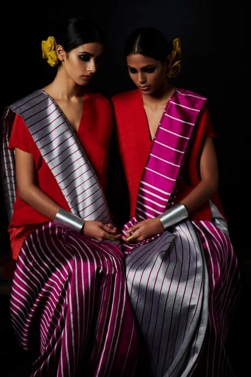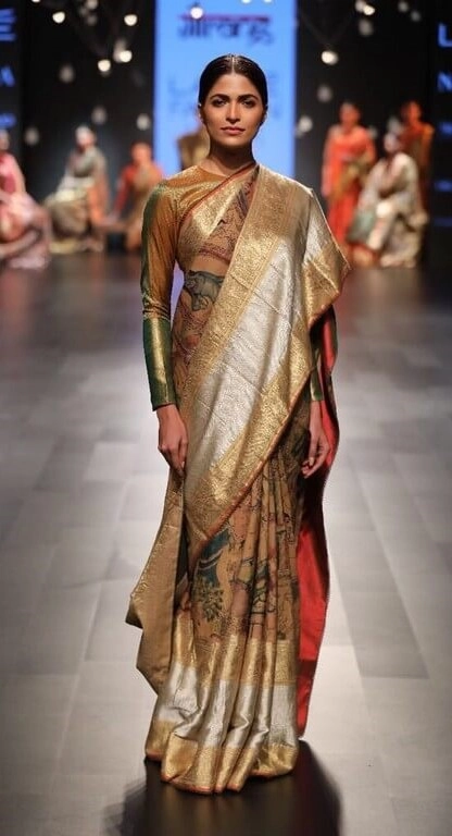 Payal Khandwala label has been producing textiles and fabrics by reviving the Indian Handloom. She gives it a contemporary makeover to the traditional handlooms to attract the millennials. She also uses Colour blocking techniques and rich silk threads for making it appealing. The handlooms work is done by the artisans on a season to season basis. The production of handloom saris is important for economic development in rural India. Completion of a single sari takes two to three days of work. Several regions have their own traditions of handloom saris.